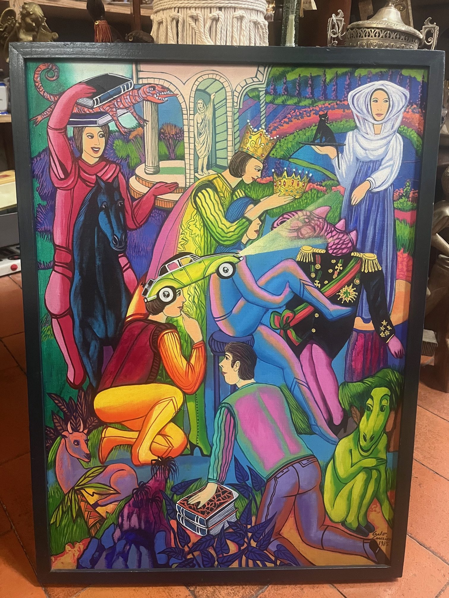 Óleo original de Carlos Carreio intitulado “Cenas da Corte”- 1985.